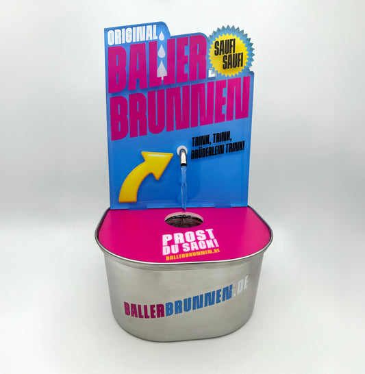 Gestalte einen Ballerbrunnen für deinen VereinOb Geburtstag, Junggesellenabschied oder Mottoparty: Der Ballerbrunnen ist der Hingucker schlechthin und bietet sich ideal für kreative Trinkspiele an. Dieser Schnapsbrunnen bringt nicht nur Spaß, sondern auch Stil auf jede Party!